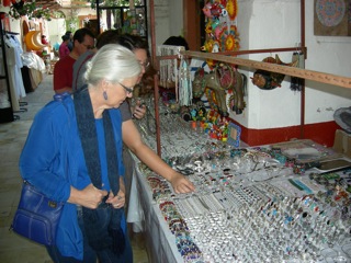And Elaine was happy to look at the display. I walked around the stores/vendors who had small displays of stuff around the inner courtyard, and saw a bracelet I thought she would like. And she did!